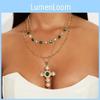 This fashion necklace features a layered design with synthetic pearls and a geometric shape, measuring in length. The gold-plated alloy cross pendant adds a stylish accent, perfect for enhancing casual or trendy outfits. Crafted for women, its ideal for summer accessories and daily wear. Wipe clean with a damp cloth to maintain its shine.
