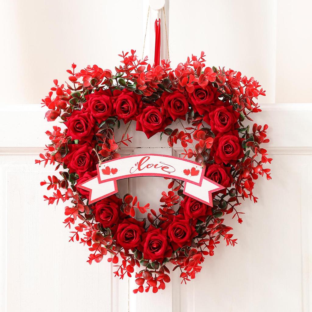 Valentine's Day & Mother's Day Red Rose Heart Wreath for Weddings & Home Decor