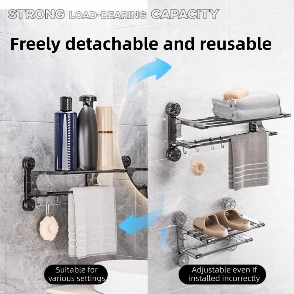 Wall Mount Toilet Storage Rack Vacuum Suction Cup Towel Rack Bathroom Towel Holder With Hook Home