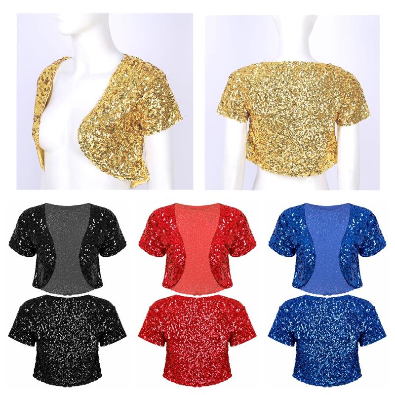 Women Sequin Cropped Jacket Glitter Waistcoat Cardigan Style Shiny Outerwear Stage Performance Costume Top