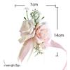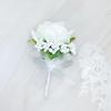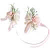 6pcs White Pink Corsage and Boutonniere Set Artificial Rose Wristlet Suit Flower for Men Wedding Party Prom Decoration