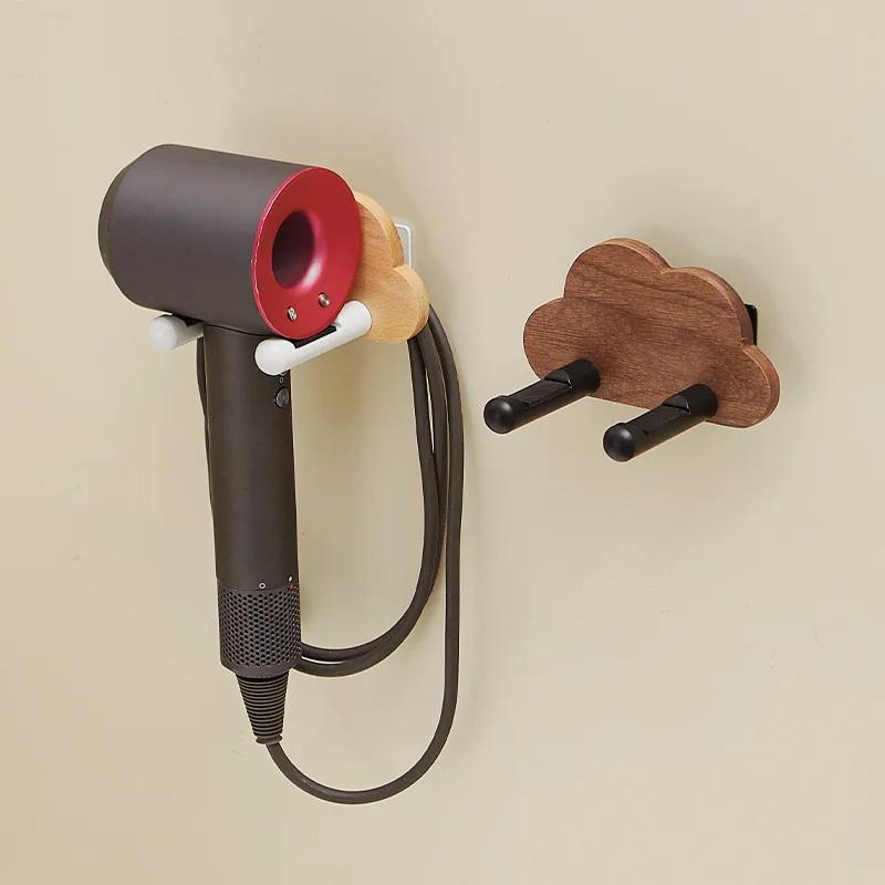 Wood Hair Dryer Rack Light Luxury Bathroom Wall-mounted Bracket Hair Dryer Hanger Air Drum Storage Rack Storage Rack