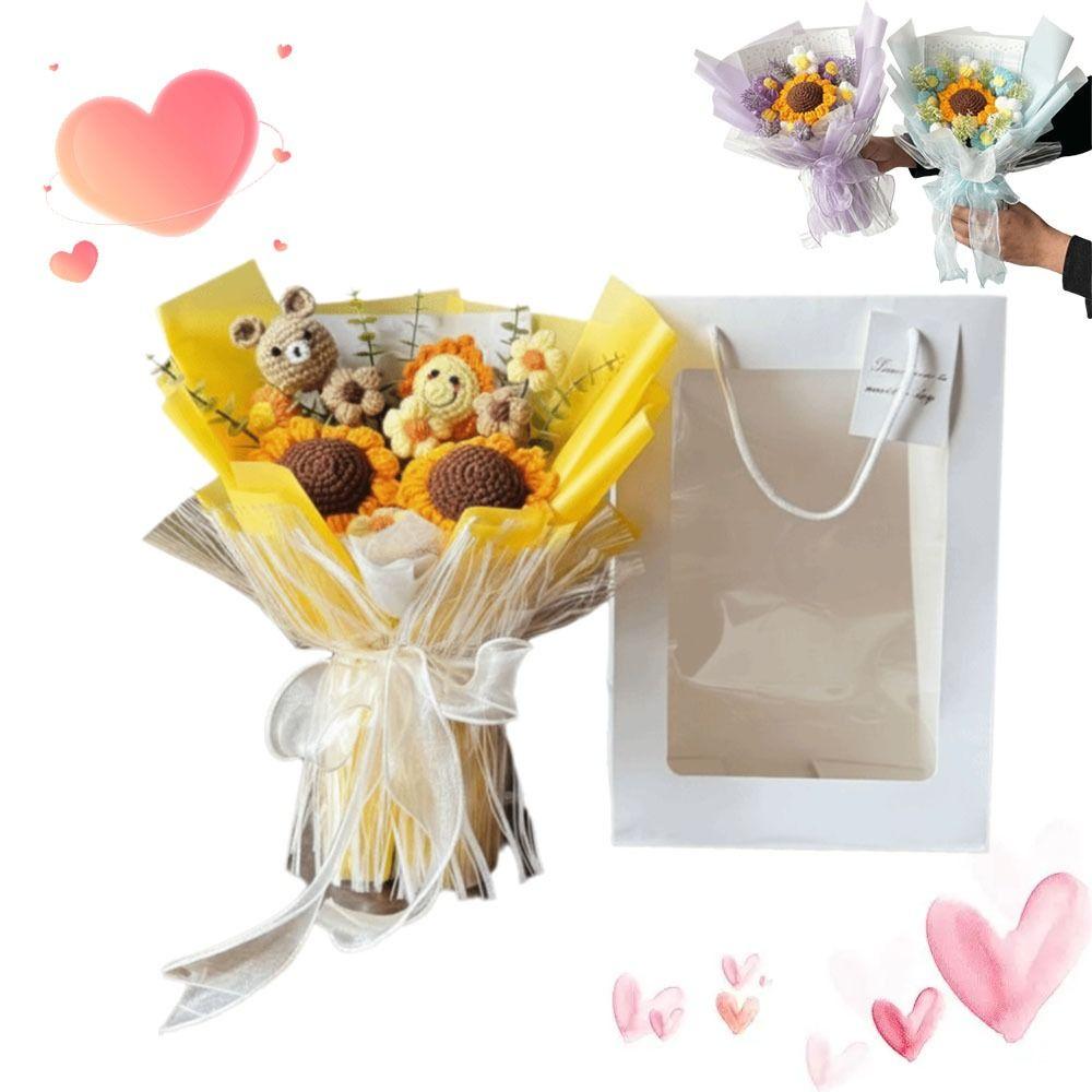 Finished Cute Bear Flower Bouquet Woven Simulation Crochet Bouquet Artificial Flowers