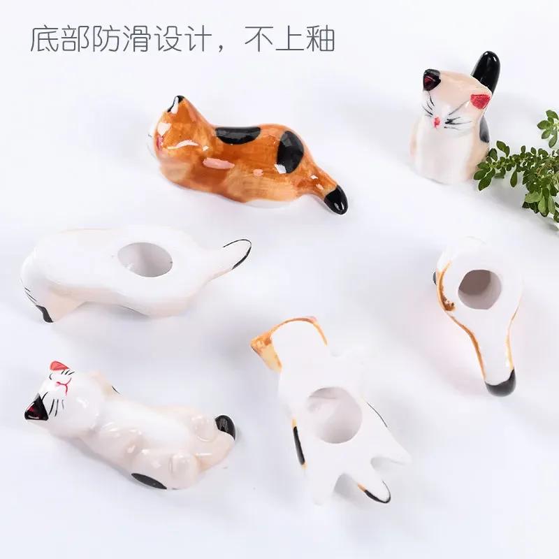Zakka Cute Cat Chopstick Holder Tableware Japanese Style Underglaze Restaurant Simple Oval Spoon Bracket Utensil for Kitchen