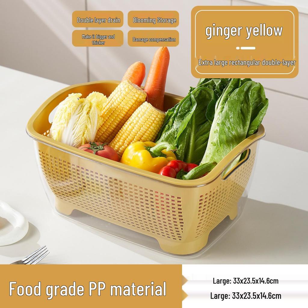 Multi-functional Double-layer Kitchen Sink Basket: Ideal for Washing Rice, Vegetables, and Fruits, or Serving Snacks.