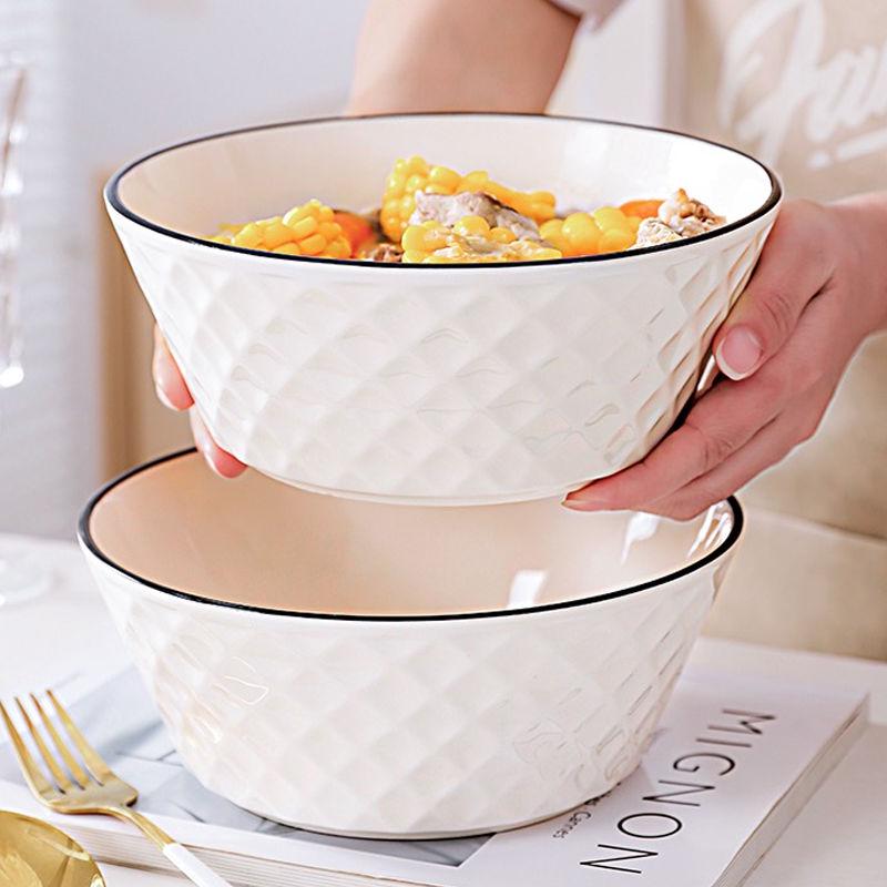 8-Inch Large Ceramic Noodle and Soup Bowl - High-End Household Cutlery for Personal Use