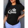 Kortärmad T-shirt med tryck av krona och bokstäver, rundhalsad, för vår och sommar, avslappnade damkläder