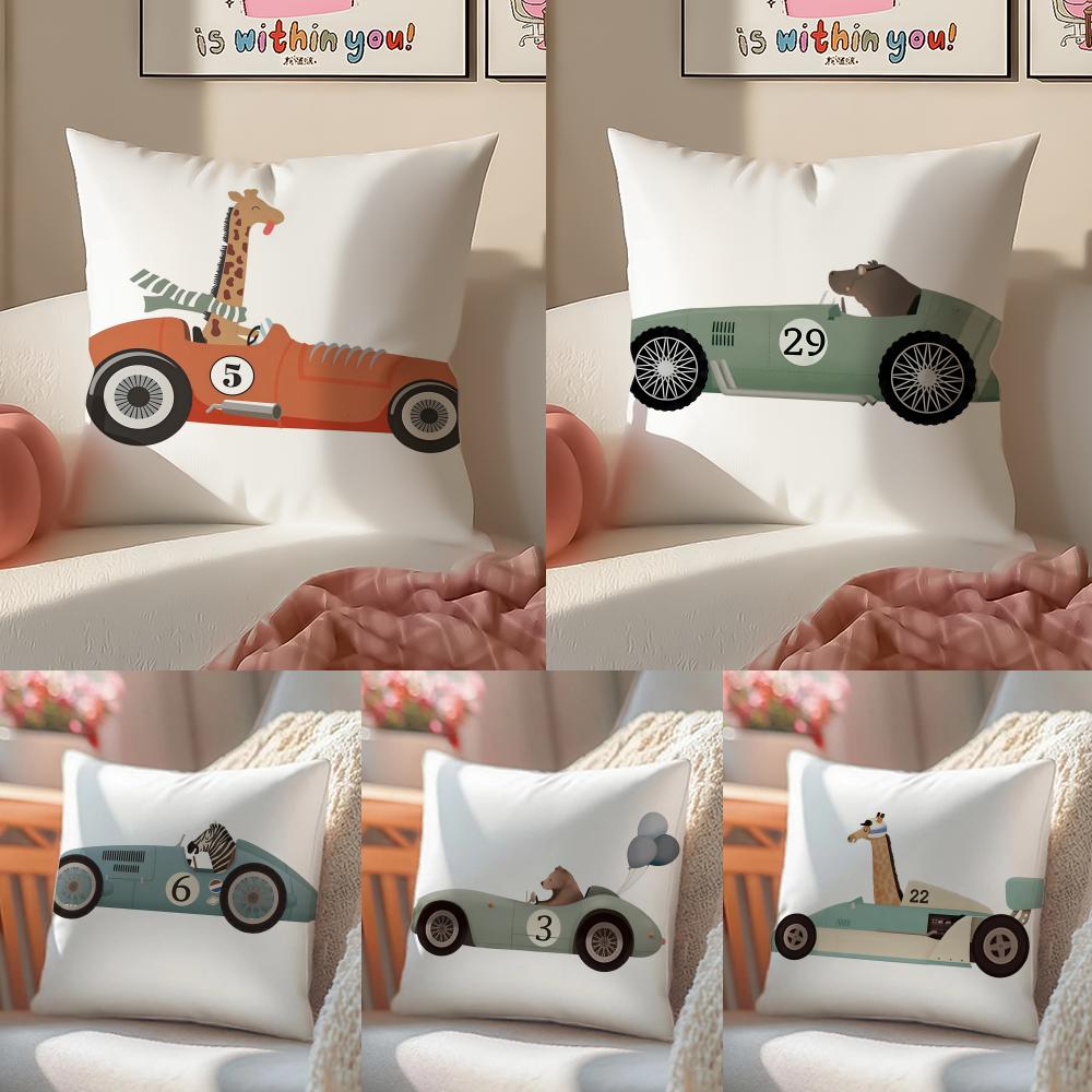 Cute Cartoon Animals Car Art Cushion Cover Silky elegant Comfort Sofa Bed Invisible zipper Beach pillowcase