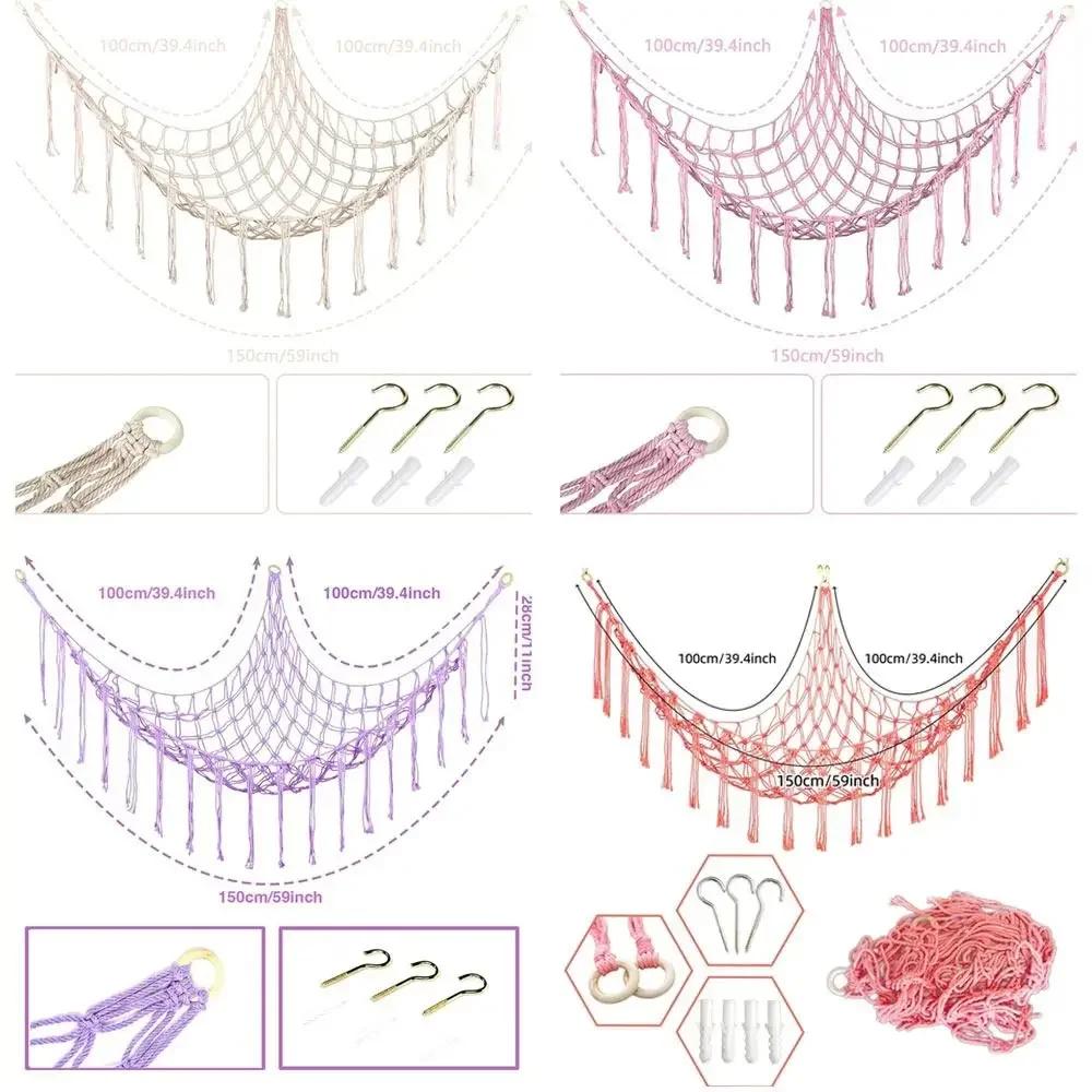 Creative Wall Corner Toy Hammocks Woven Stuffed Mesh Mesh Hammock Cotton Rope Tassels Hanging Storage Net Organizer
