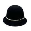 Solid Color Flower Topper Hat Pearl Woolen Bucket Hat Elegant Fisherman Hat Girl