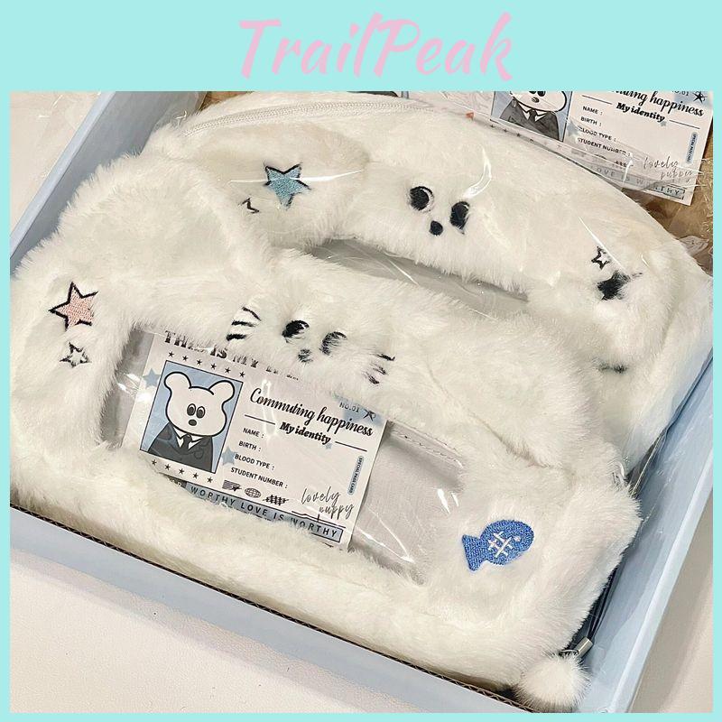 Mjuk Blå Hund Pennskrin Med Stor Kapacitet För Flickor Och Förvaring Av Kontorsmaterial