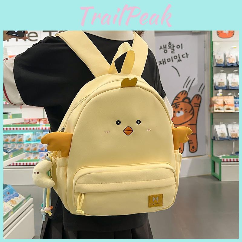 Cute Cartoon Chicken Design Children's Casual Backpack With Plush Pendant For School And Daily Use