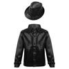 Pojkars glänsande paljettlångärmad skjorta med slagkrage, jazzdansshow, fedorahatt
