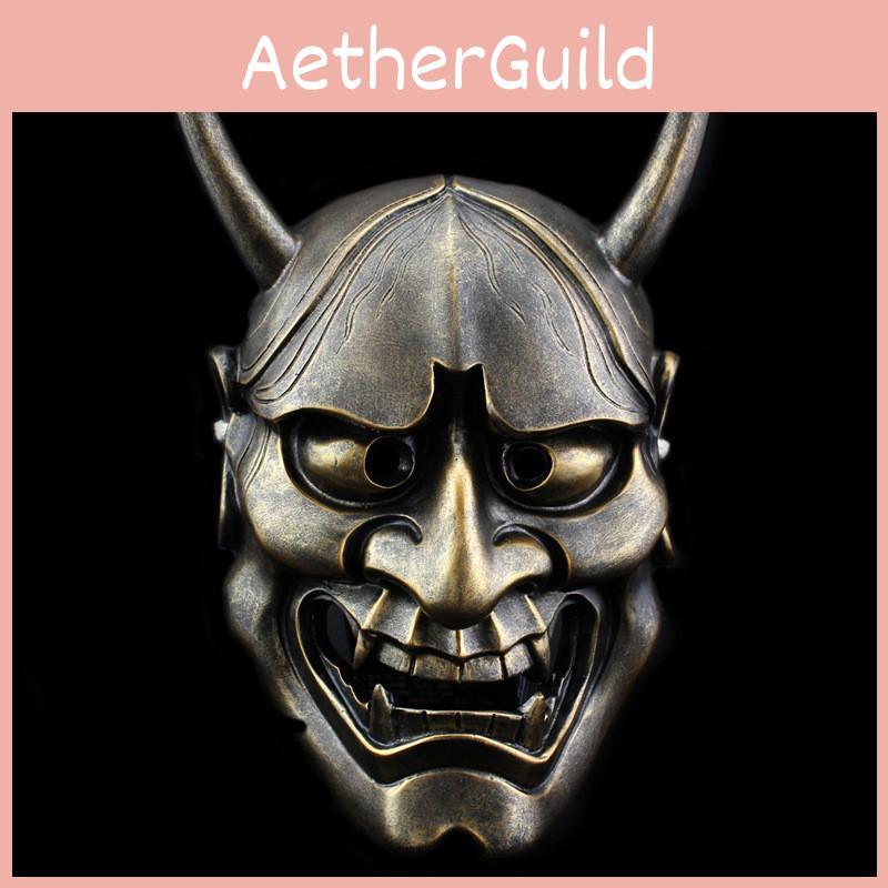 This resin mask features a Japanese Prajna-inspired design, available in various colors including white, red, silver, and black. Crafted from durable resin, it measures approximately 8 inches wide by 10 inches high, providing a bold and detailed horror-themed appearance.