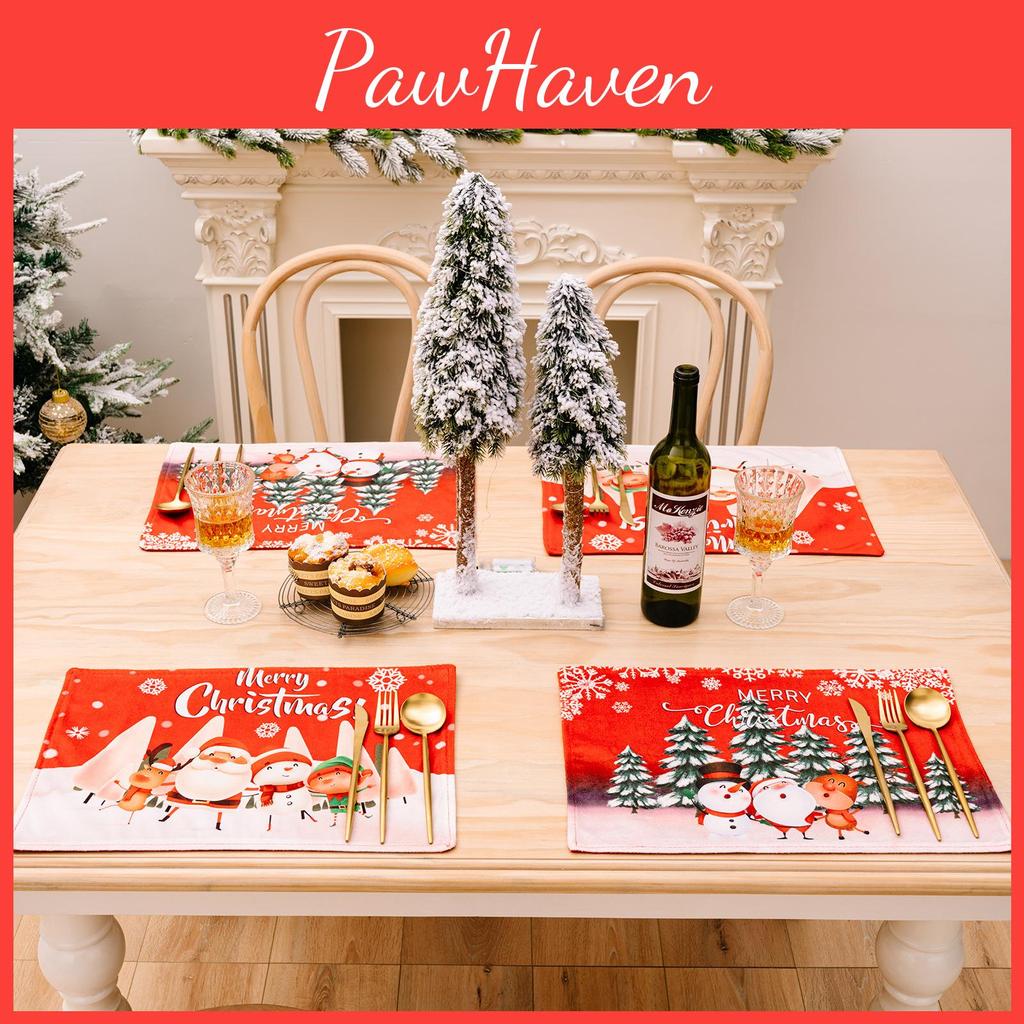 Charming Holiday Theme: These adorable Christmas-themed placemats add a delightful touch to your holiday table setting, featuring fun designs of Santa, snowmen, and reindeer.