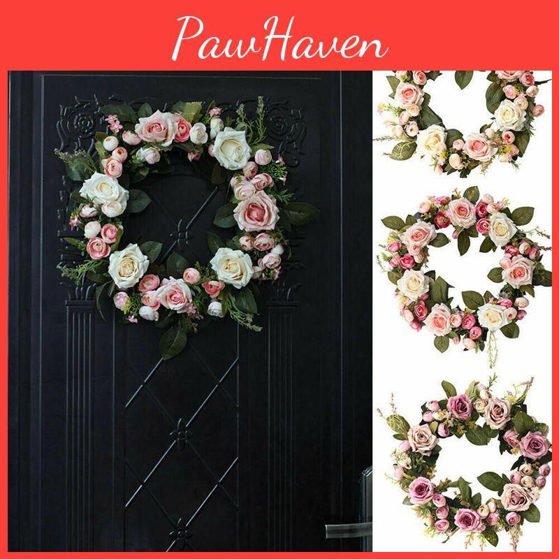 Utsökt konstgjord pionrosblomma hängande dörrkrans för fester