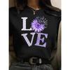 Kärlek Fred Blommor Tryck T-shirt Dam Sommar Rundhalsad Kläder Trendig Hip Hop Kortärmad All-Match Y2K Dam T-shirt