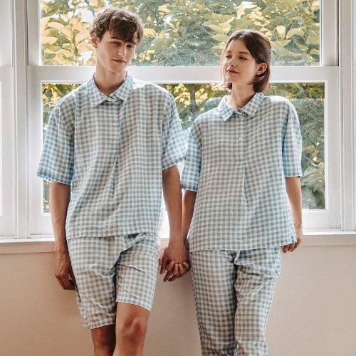 👙 Embrace ultimate comfort with this stylish unisex short set, featuring a timeless lilac blue check pattern. Designed for freedom of movement and a relaxed fit, it's perfect for lounging or restful sleep.
