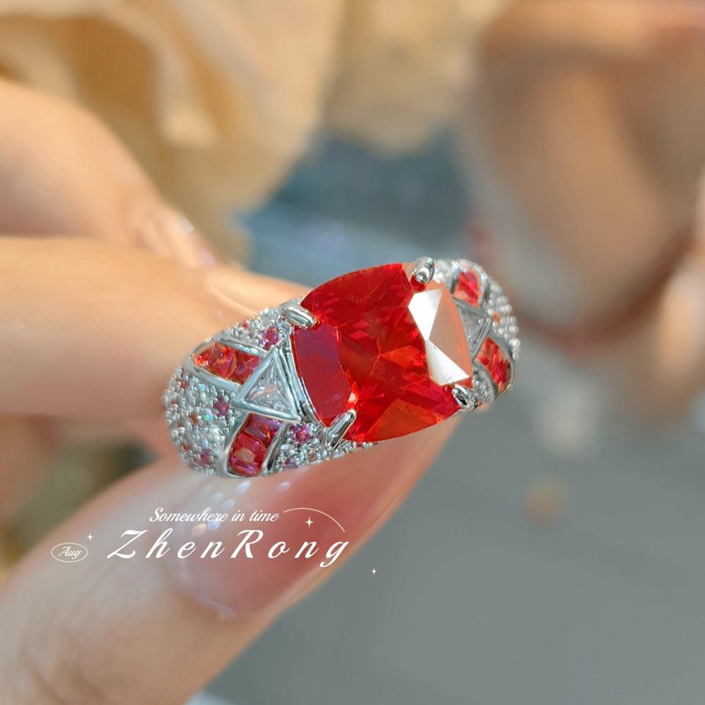 Open Ring Vintage Luxury Square Red Corundum Ring with High Carbon Red Diamond Elegant Unique Women Ring