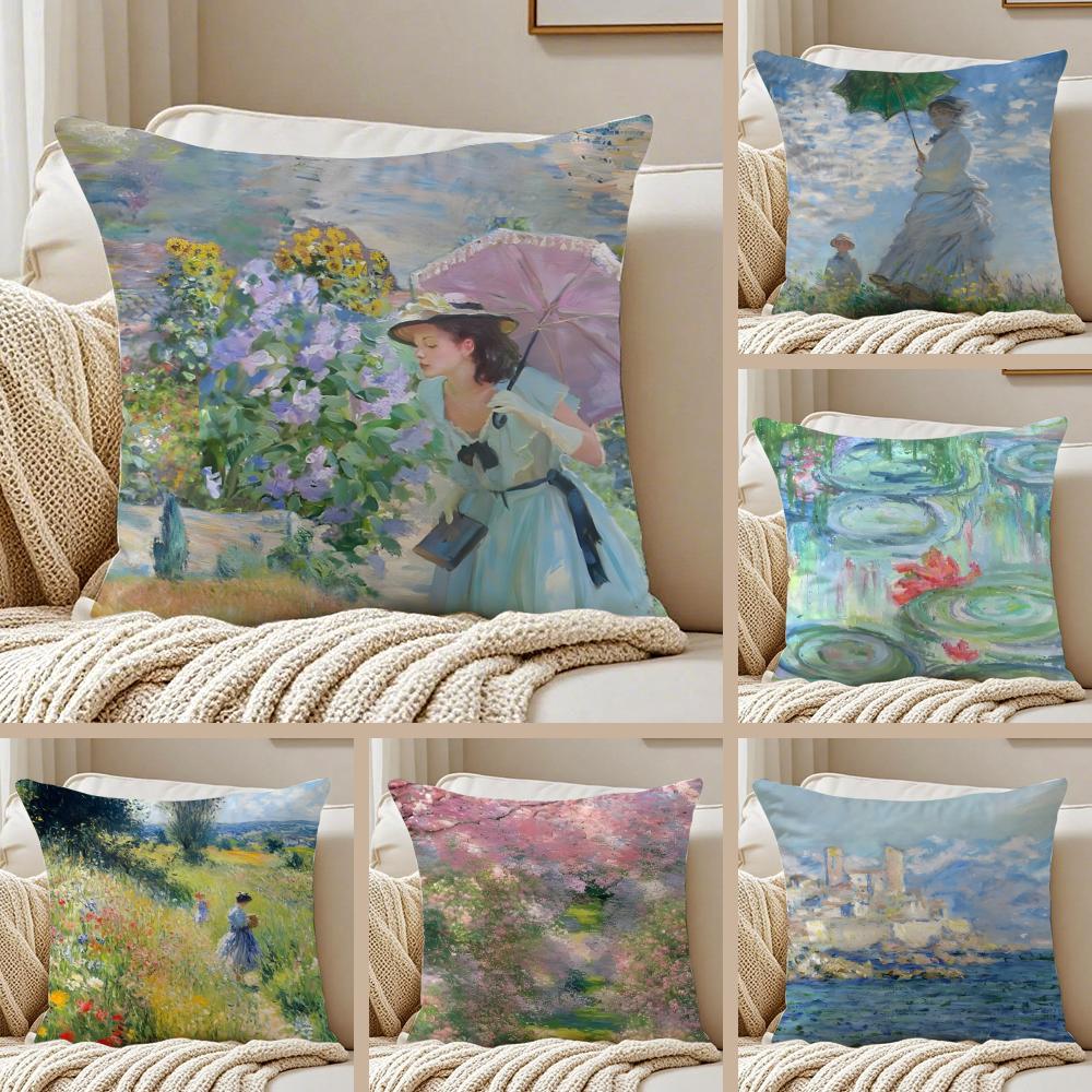 Famous Classic Oil painting Art CClaude Monet Cushion Cover Pillowcase Antidustmite Invisible Zipper Short Plush Sofa Cushion