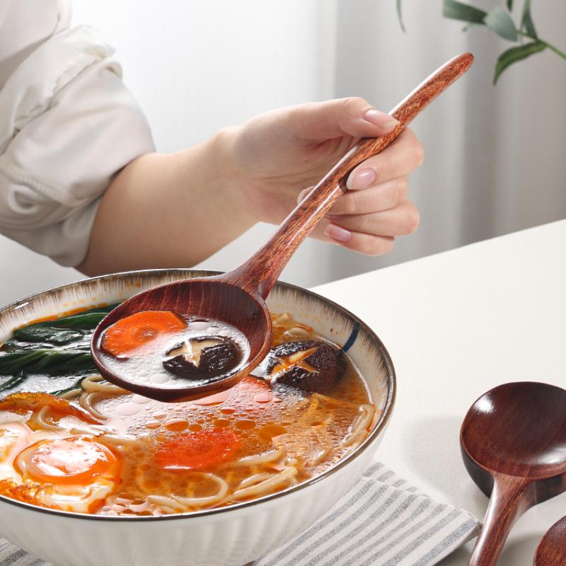Sopslev i massivt trä Hushållslångt skaft Stor Ramensked Kreativ Sked i Sköldpaddsform