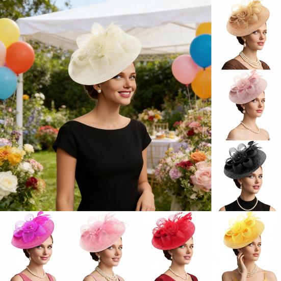 Genomskinlig Nätblomma Fascinatorhatt Vintage Tebjudning Dam Vävhatt Bröllop Cocktail