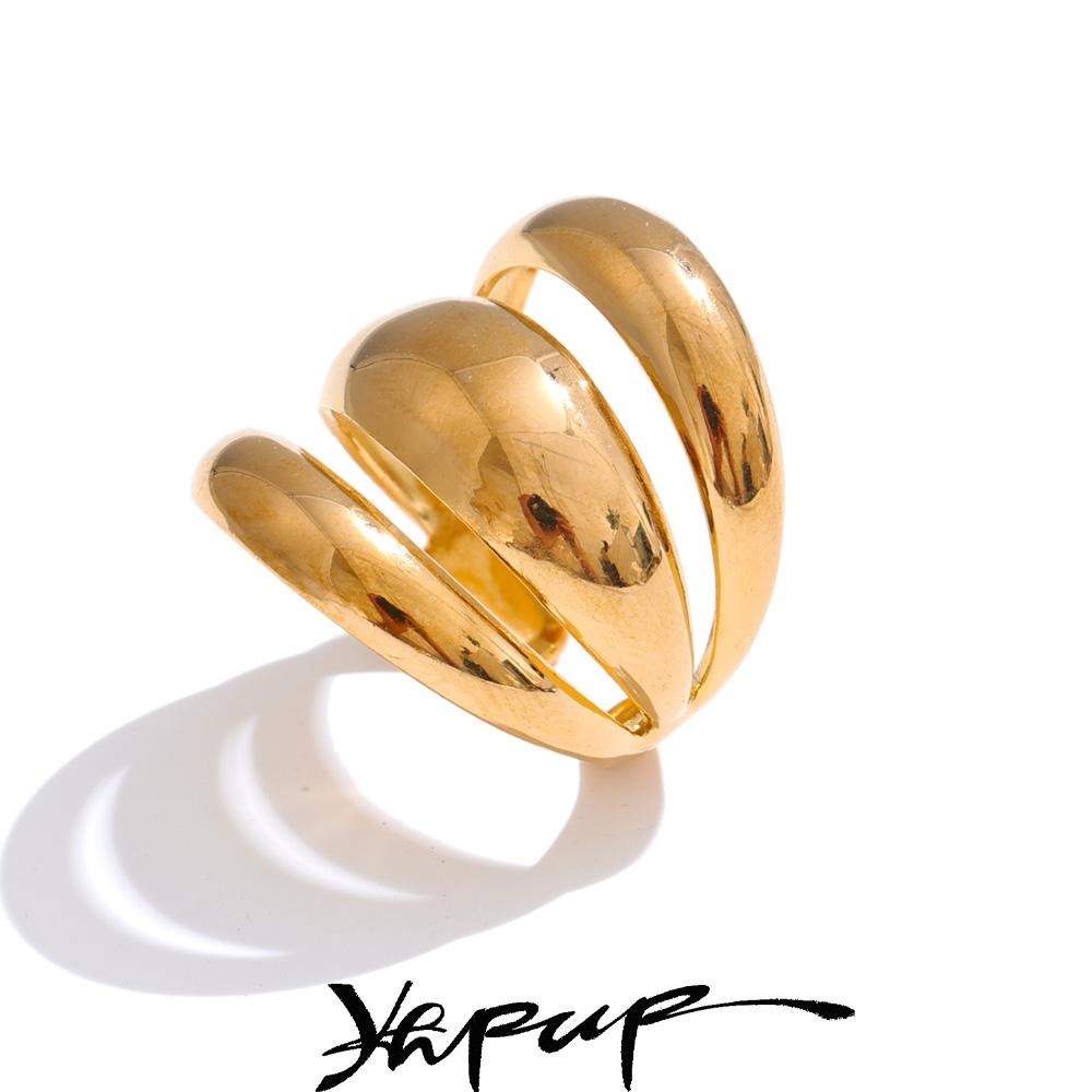 Yhpup Nyheter Glänsande Rostfritt Stål Lager på Lager Ihålig Öppen Ring för Kvinnor Distinkt Geometriskt Attraktivt Smycke
