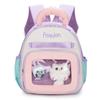 This childrens cartoon backpack features a lightweight nylon construction with breathable padding and a padded air cushion strap system for comfortable wear. it offers ample space for daily school essentials. Its playful animal design and colorful elements make it ideal for preschoolers attending early education classes. Easy to clean with a damp cloth, this versatile bag supports young childrens daily activities in school or daycare.