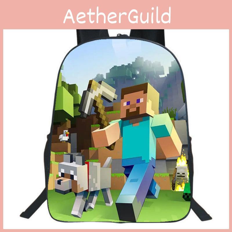Minecraft Backpack For Kids With Printed Design Nylon School Bag With Padded Straps For Elementary Students