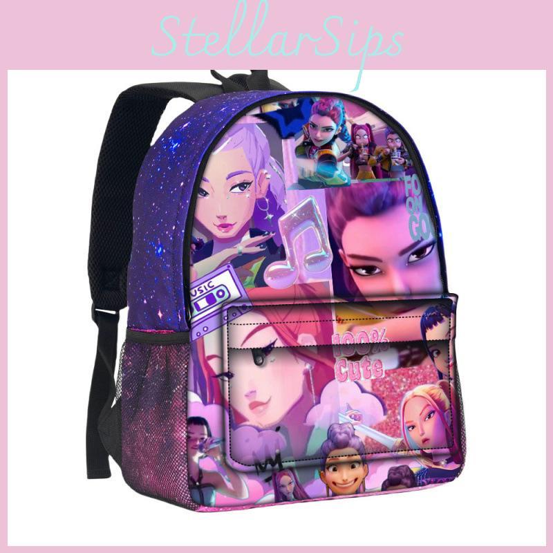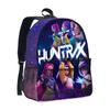 The Huntrix Kpop3D constellation pattern backpack features durable Oxford cloth construction with polyester lining, measuring approximately 12 inches in height, 5 inches in width, and 4 inches in depth. Its shock-resistant and abrasion-resistant design supports students' daily school needs. Suitable for elementary students, it offers a fun cartoon starry sky print and a ergonomic back panel for comfort during school hours. Easy to maintain, wipe clean with a damp cloth.