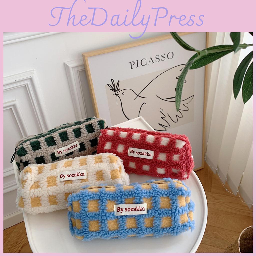 Detta pennskrin med stor kapacitet har ett yttre i plysch med våffelstruktur, tillverkat av mjukt, slitstarkt tyg. Det har ett rutmönster med flera färgalternativ, inklusive gult, blått, grönt och rosa, samt ett slätt satinfoder för extra skydd. Denna mångsidiga förvaringsväska är designad för dagligt bruk och möjliggör organiserad förvaring av kontorsmaterial för både studenter och yrkesverksamma.. Den är slitstark med lättrengjorda ytor och kan användas i skolan, på jobbet eller hemma, vilket säkerställer att pennor, blyertspennor och små tillbehör hålls snyggt samlade.