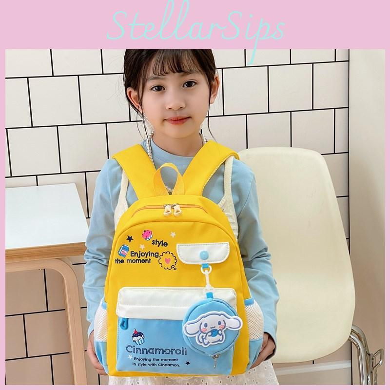 Cinnamon Letters Print Cartoon Kids Backpack With Breathable Nylon For Kindergarten Children