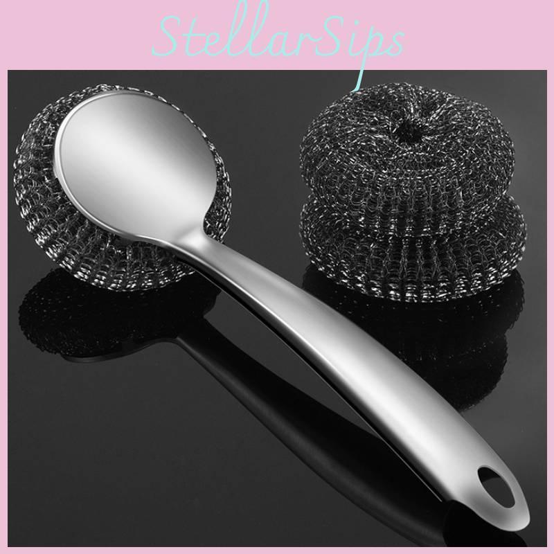 Stainless Steel Wire Scrubber With Handle For Kitchenware And Metal Dishes Deep Cleaning