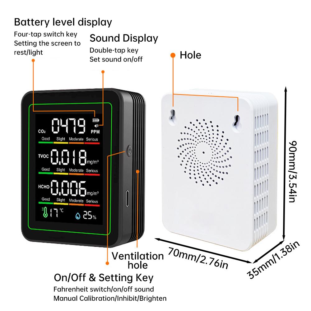 MT11 5-in-1 Air Quality Monitor Carbon Dioxide Detector Formaldehyde TVOC Temperature & Humidity Air Quality Monitor Type C Port