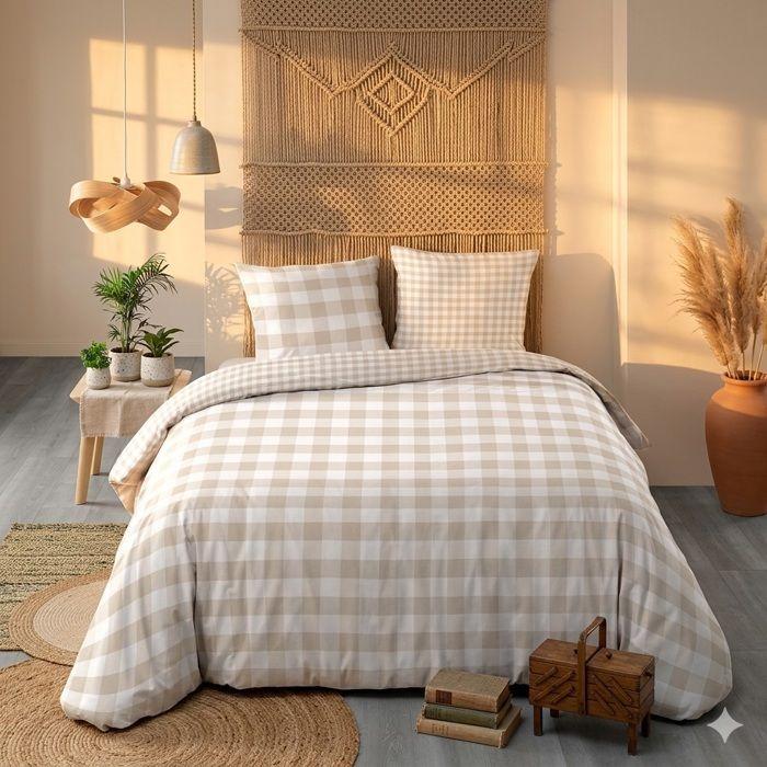 Parure de lit 260 x 240 cm Victoire a carreaux beige