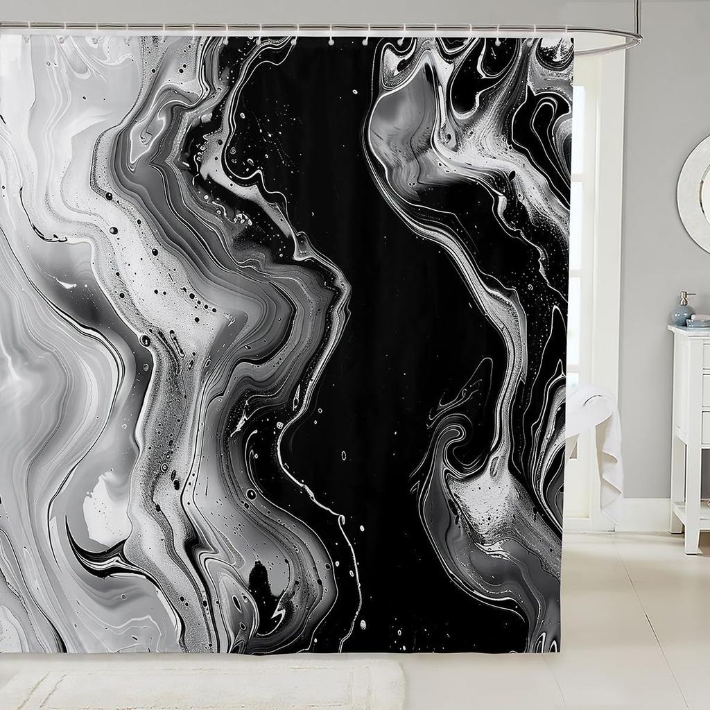 1pc Black and White Shower Curtain for Bathroom Decor 72" L x 72" W Modern Abstract Marble Bath Curtain Aesthetic Ink Textu