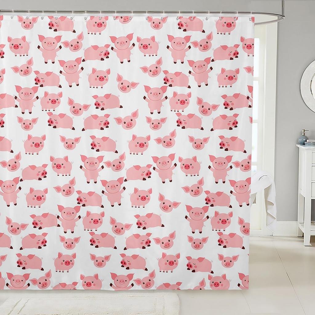 1pc Pink Pig Shower Curtain 72"x72" Kids Cute Pigs Bathroom Shower Curtain Set for Teens Farm Animal Bath Curtain Waterproo