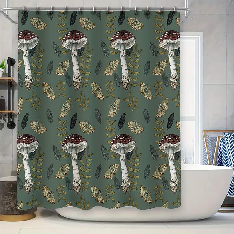 Mushroom Forest Shower Curtain Woodland Nature Backdrop Cottagecore Home Decor Bathroom Set Vintage Rustic Wall Tapestry