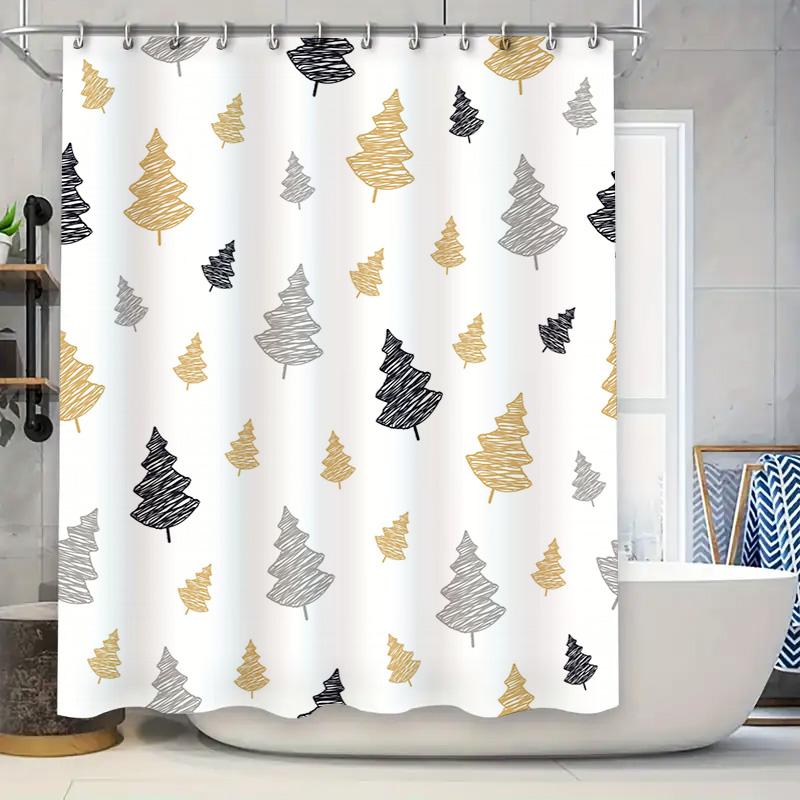 Modern Christmas Tree Shower Curtain Black Gold Festive Design for Bathroom Decor Waterproof Fabric Available in Various Sizes o