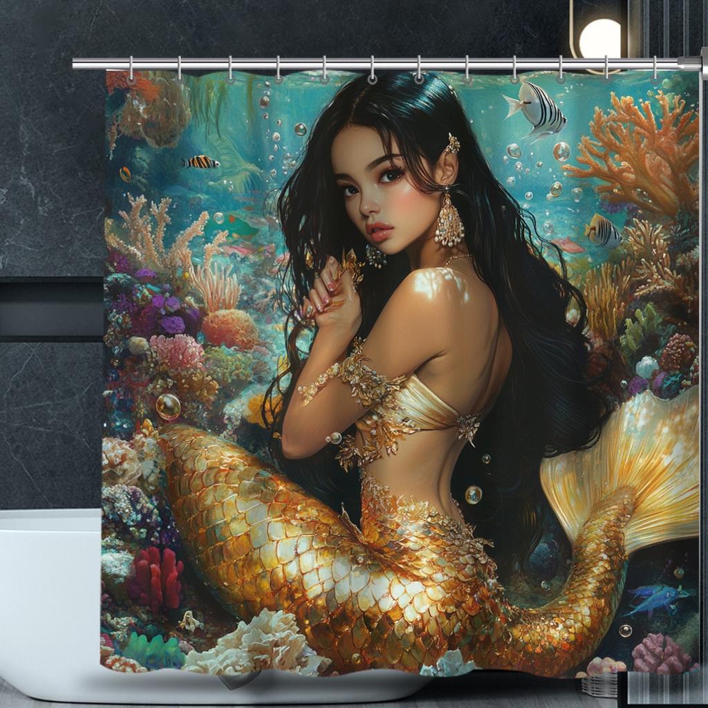 1pcs Beautiful Mermaid Print Shower Curtain, Machine Washable, Suitable for All Seasons, Bathroom Decorative Pattern Curtain