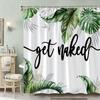 ~O~1pc 'Get Naked' Shower Curtain - Black Cursive Font, Green Tropical Leaves & Gold Accents, Polyester, Modern Nature Design