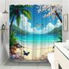 ~O~1pc Tropical Beach Shower Curtain - Palm Trees, Starfish, Cherry Blossoms & Butterflies, Polyester, 70x70", 12 Hooks