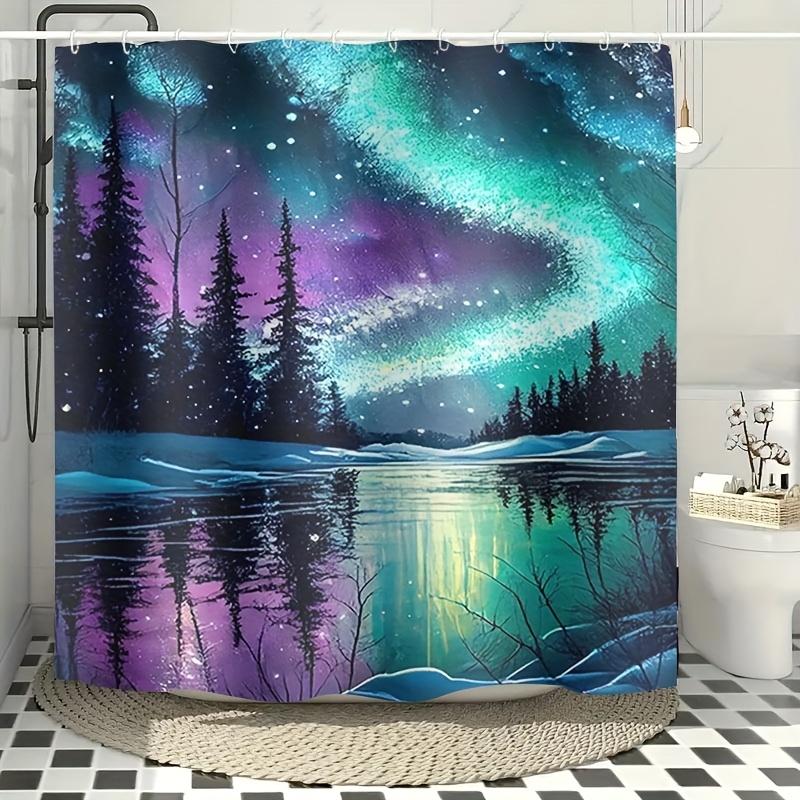 VIKAMA Arctic Light Snow Night Forest Shower Curtain Waterproof and Mold-Resistant Curtain for Shower Room Decor