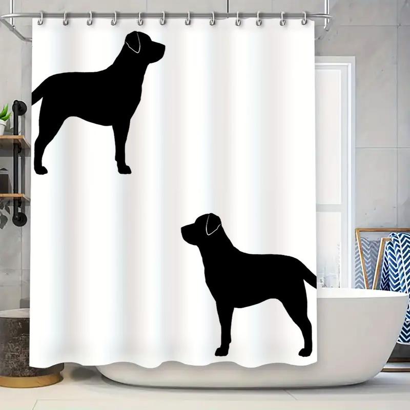 Bathroom Shower Curtain Waterproof Pet Design Home Decor Black Silhouette Dog Shape Decoration White Fabric Shutter for Bath Roo
