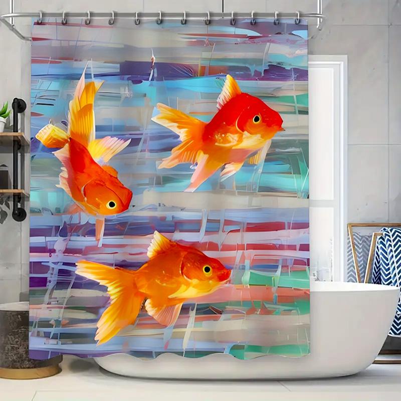 Vibrant Fish Print Shower Curtain for Bathroom Decor Waterproof Fabric Multicolor Stripes Design Perfect Gift Idea