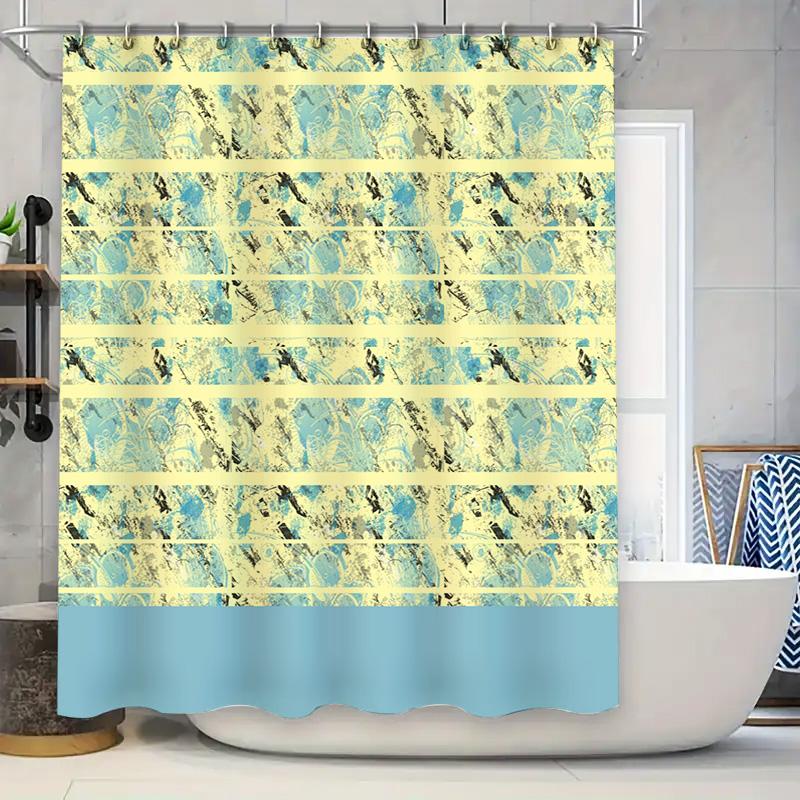Elegant Bath Curtains Blue and Yellow Printed Shower Curtain Fabric Bathroom Decor Waterproof Rod Pocket for Home Use