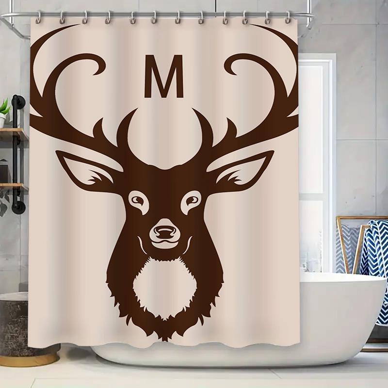 Deer Head Shower Curtain Monogram M Bath Decor Unique Brown Animal Print Shower Panels for Bathroom Waterproof Fabric (M)