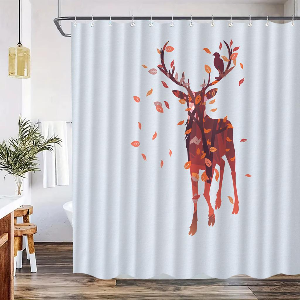 Elegant Orange Stag Art Bath Drapery – Waterproof Polyester with Hooks, Machine Washable Holiday & All-Season Decor