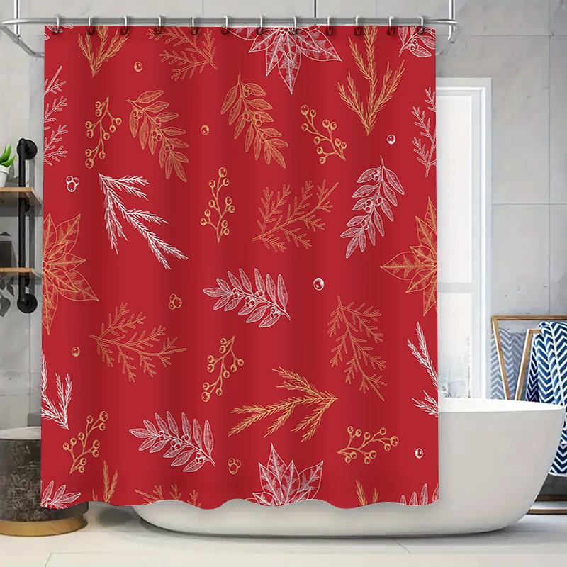 Luxury Christmas Shower Curtain Floral Print Home Decoration Waterproof Red Bath Mat Set Decoration for Bathroom Red/Floral Desi