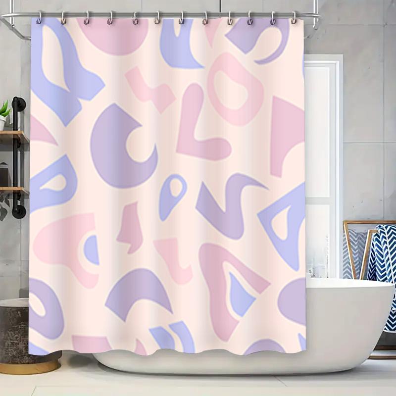 Modern Bathroom Decor Shower Curtain Set Waterproof Fabric with Cute Colorful Alphabet Patterns for Home Bathing